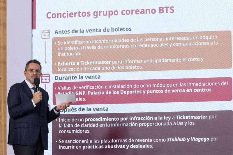 En medio de la polémica por la venta de entradas para los conciertos de BTS en México, el titular de la Profeco, Iván Escalante Ruiz, anunció que el gobierno federal presentará nuevos lineamientos para regular la venta de boletos en conciertos masivos y evitar abusos contra los consumidores.