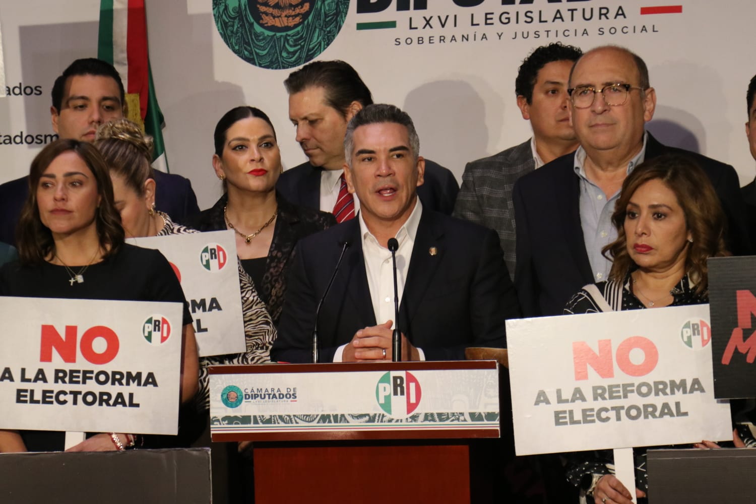 En conferencia de prensa diputados del PRI liderados por Humberto Moreira y el presidente nacional Alejandro Moreno, se pronunciaron contra la reforma electoral presentada por el ejecutivo federal. Fotos Bruno Cortés/Maya Comunicación