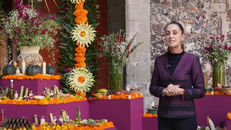 Sheinbaum dedica ofrenda de Palacio Nacional a mujeres indígenas